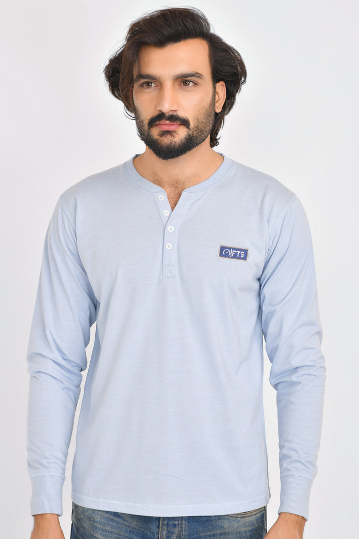 Henley Full Sleeves T-Shirts | Aqua Full Sleeves Henley Shirt