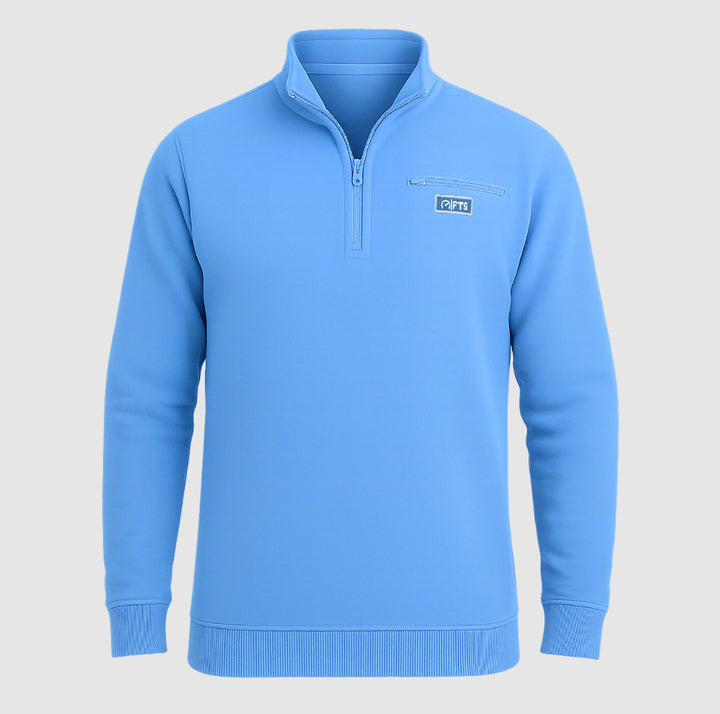 Lite Blue Fleece Sweatshirts | Zipper Collar Jumpers Chest Pocket