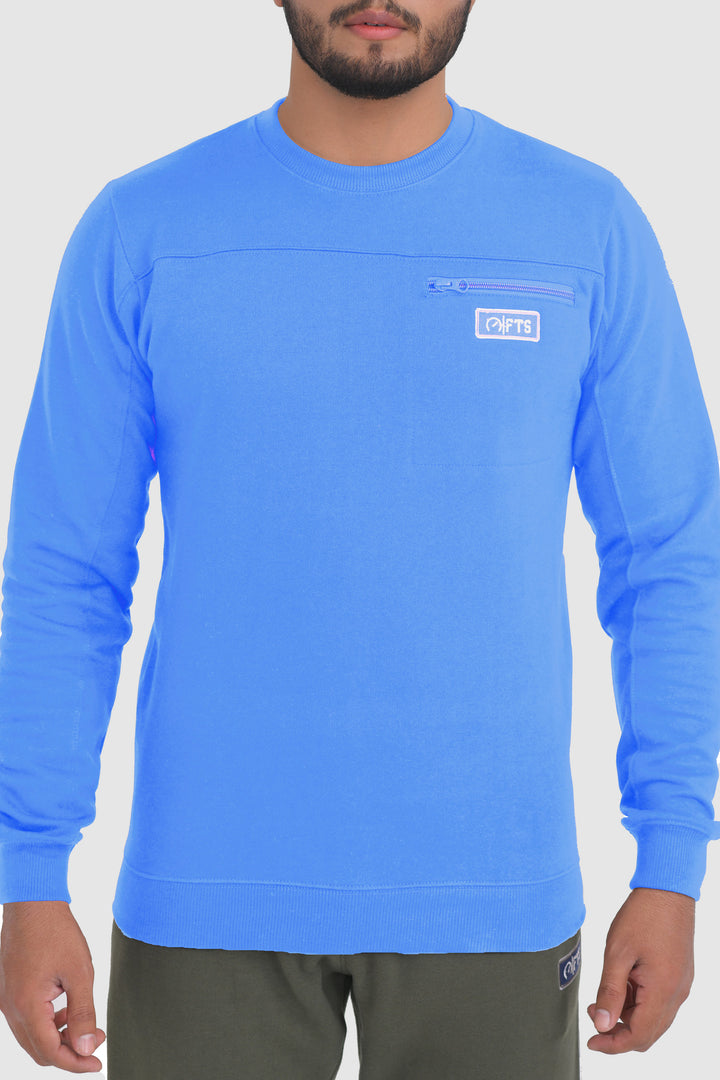 Lite Blue Sweatshirts Round Neck Jumpers Chest Pocket